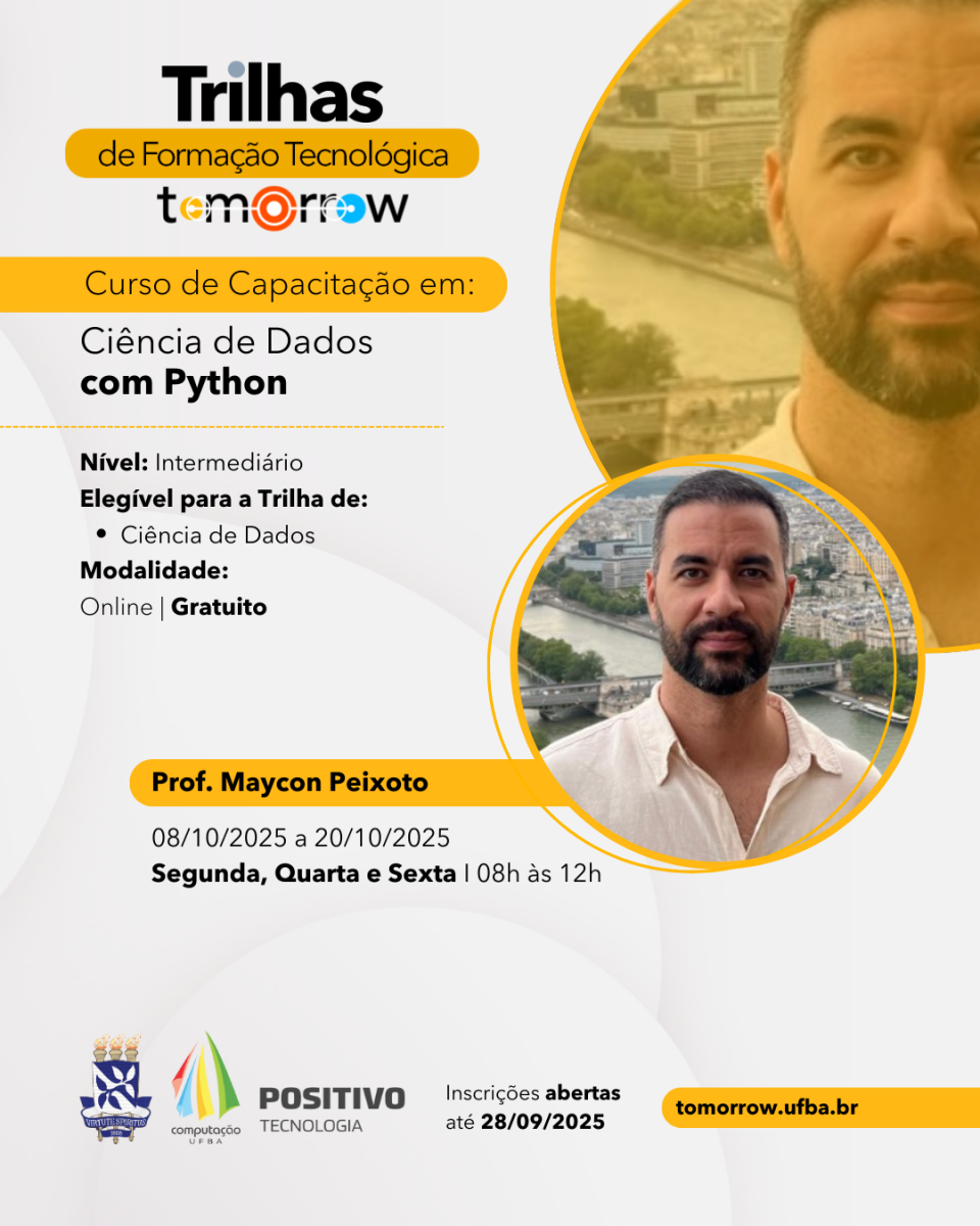 Informações em: https://bit.ly/Cursos-Outubro-Tomorrow-UFBA