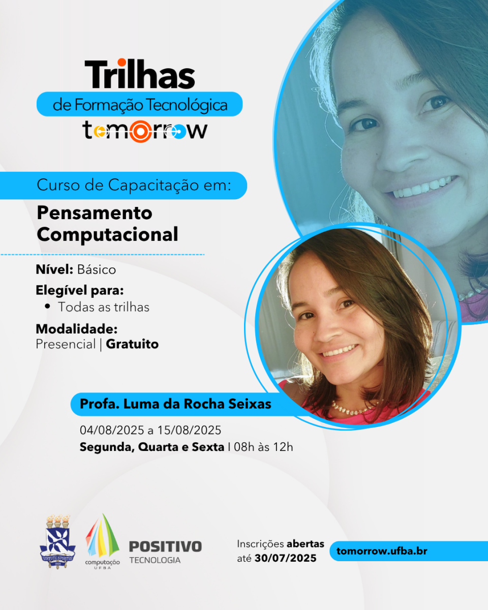 Inscrição em: https://tomorrow.app.ic.ufba.br/