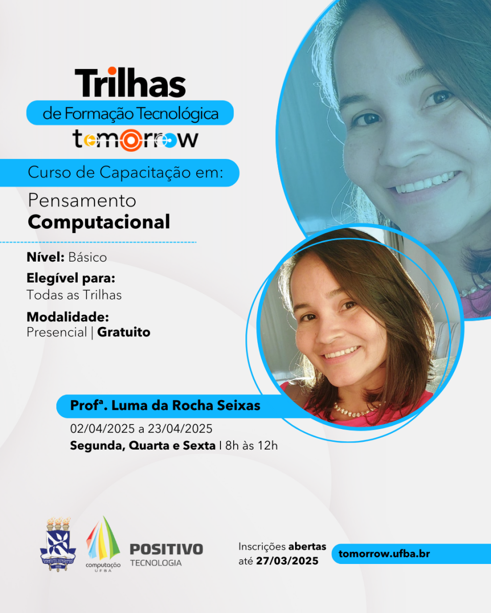 Inscrição em: https://tomorrow.app.ic.ufba.br/